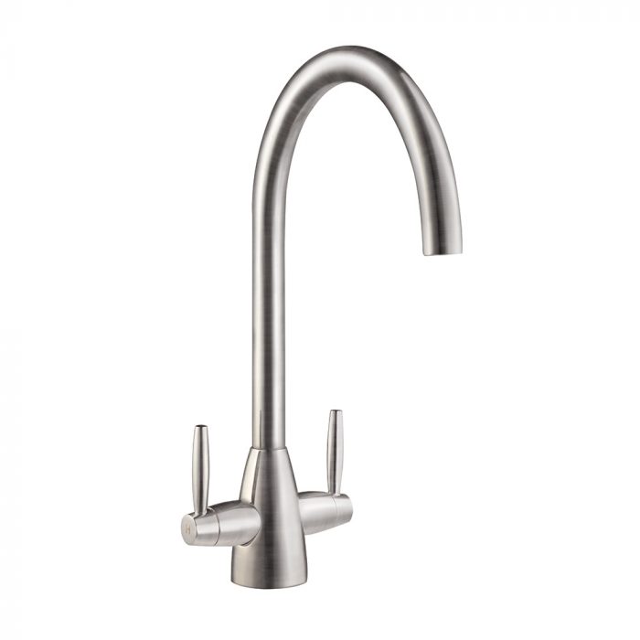 The Alona Brushed Steel Tap combines modern aesthetics with practical functionality, ideal for contemporary kitchens. With its twin lever design and elegant swan neck, this tap offers precise control over water temperature and flow, ensuring convenience and efficiency in your kitchen tasks. Crafted from high-quality brushed steel, the Alona tap is not only visually appealing but also built for durability.